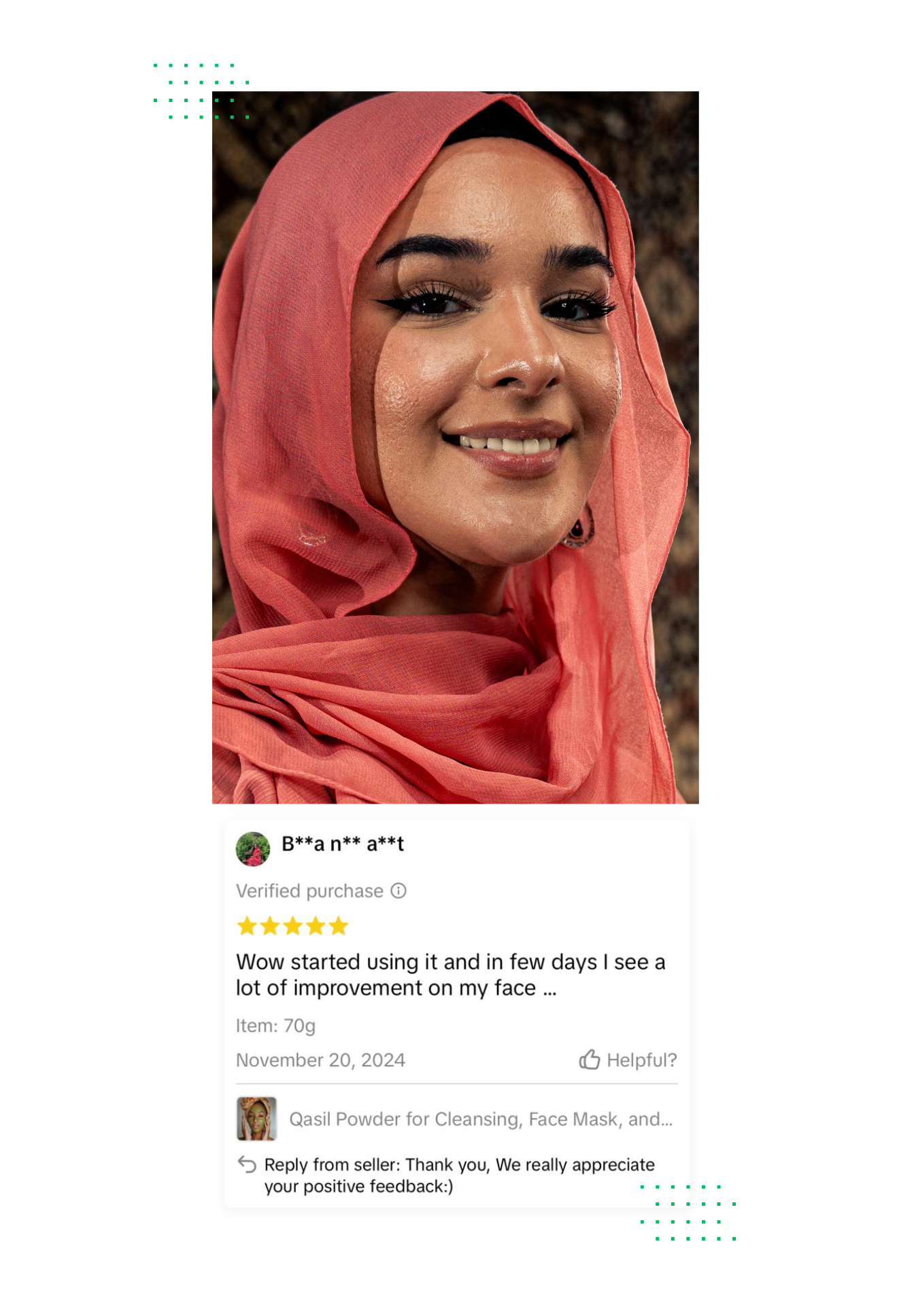 1. Mix: 1 tsp of qasil powder with 1 tbsp of water or rosewater to form a smooth paste.